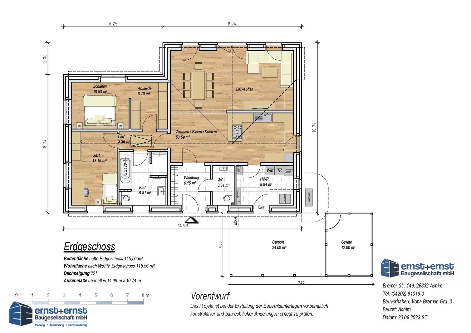 Willkommen in Ihrem neuen Zuhause in Achim! In diesem geplanten Einfamilienhaus erwartet Sie modernes Wohnen auf rund 116 m² Wohnfläche, ergänzt durch eine ebenso große Nutzfläche, alles auf einer Ebene. Der Bungalow bietet Ihnen ein komfortables und zeitgemäßes Wohngefühl.