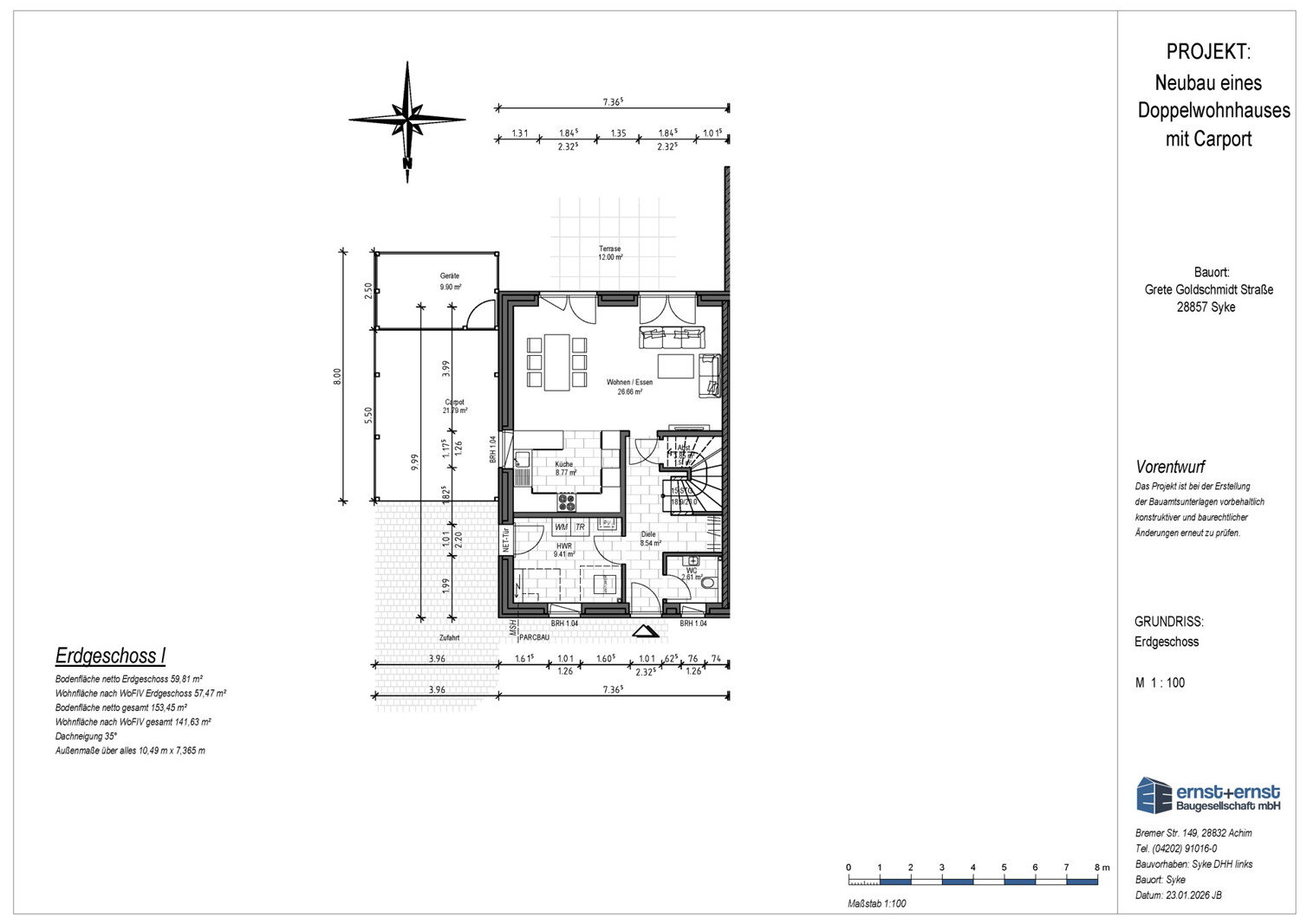 Neubau Doppelhaushälfte in Syke | Gartenvillenviertel Neubaugebiet