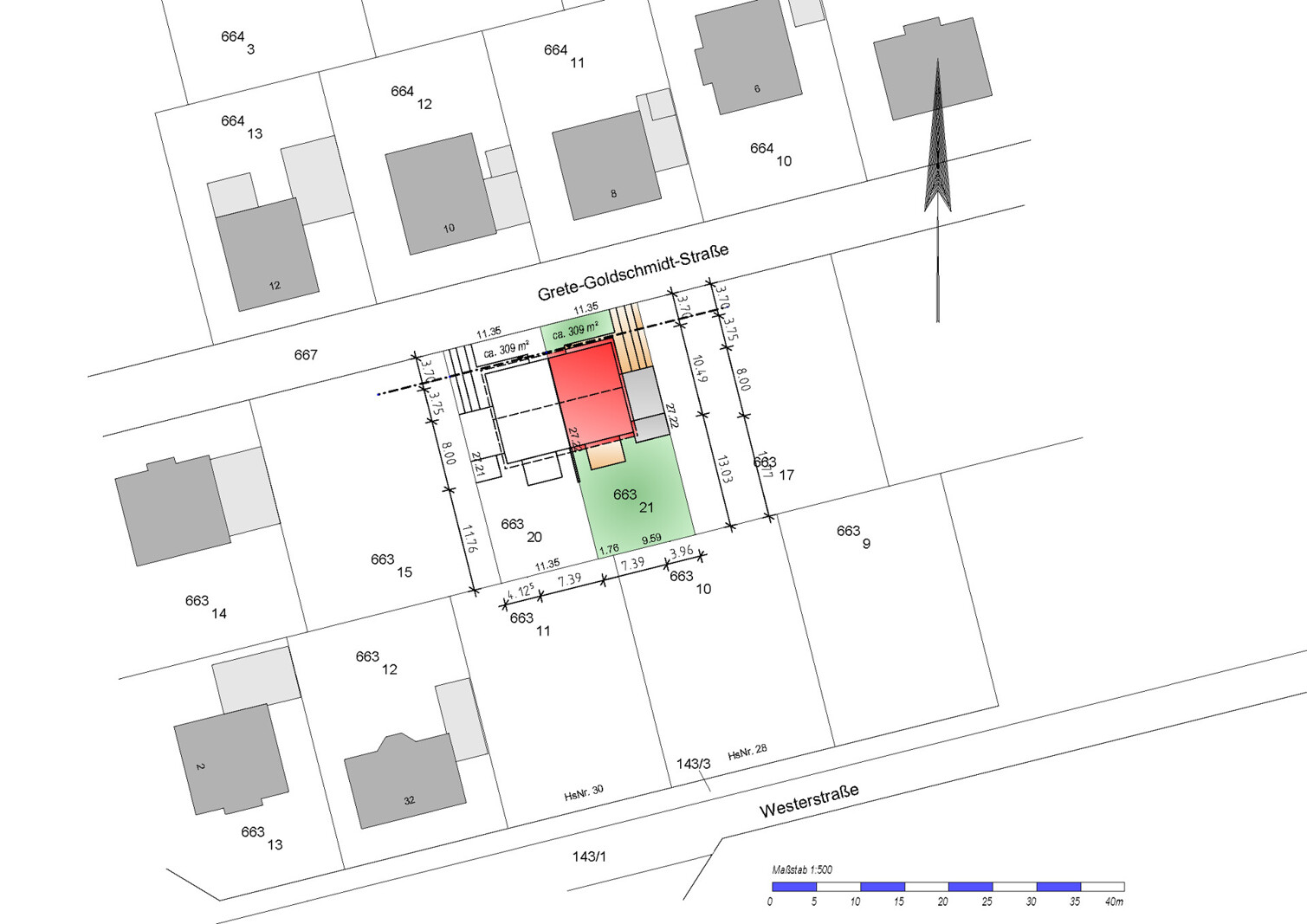 - Gartentrennmauer zwischen den beiden Doppelhaushälften (gemauert)