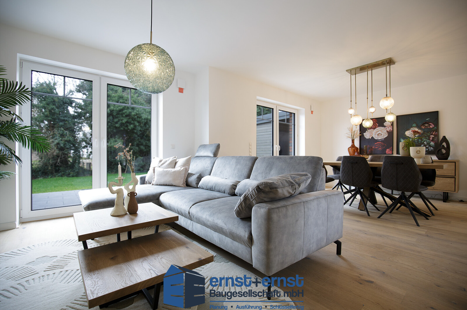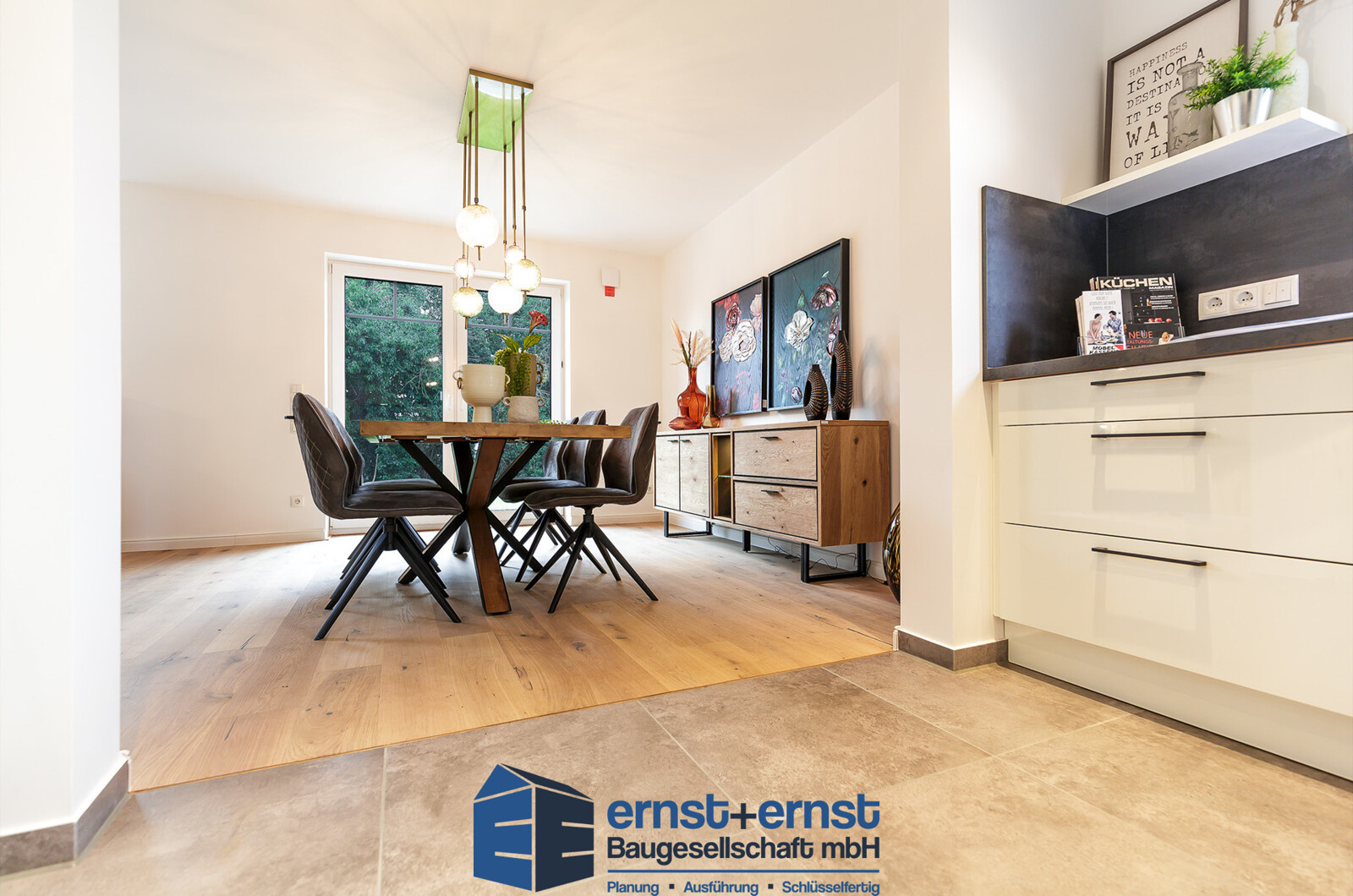 Im Erdgeschoss erwartet Sie ein großzügiger Wohn- und Essbereich mit offener Küche – der ideale Mittelpunkt für Familienleben und Gäste.